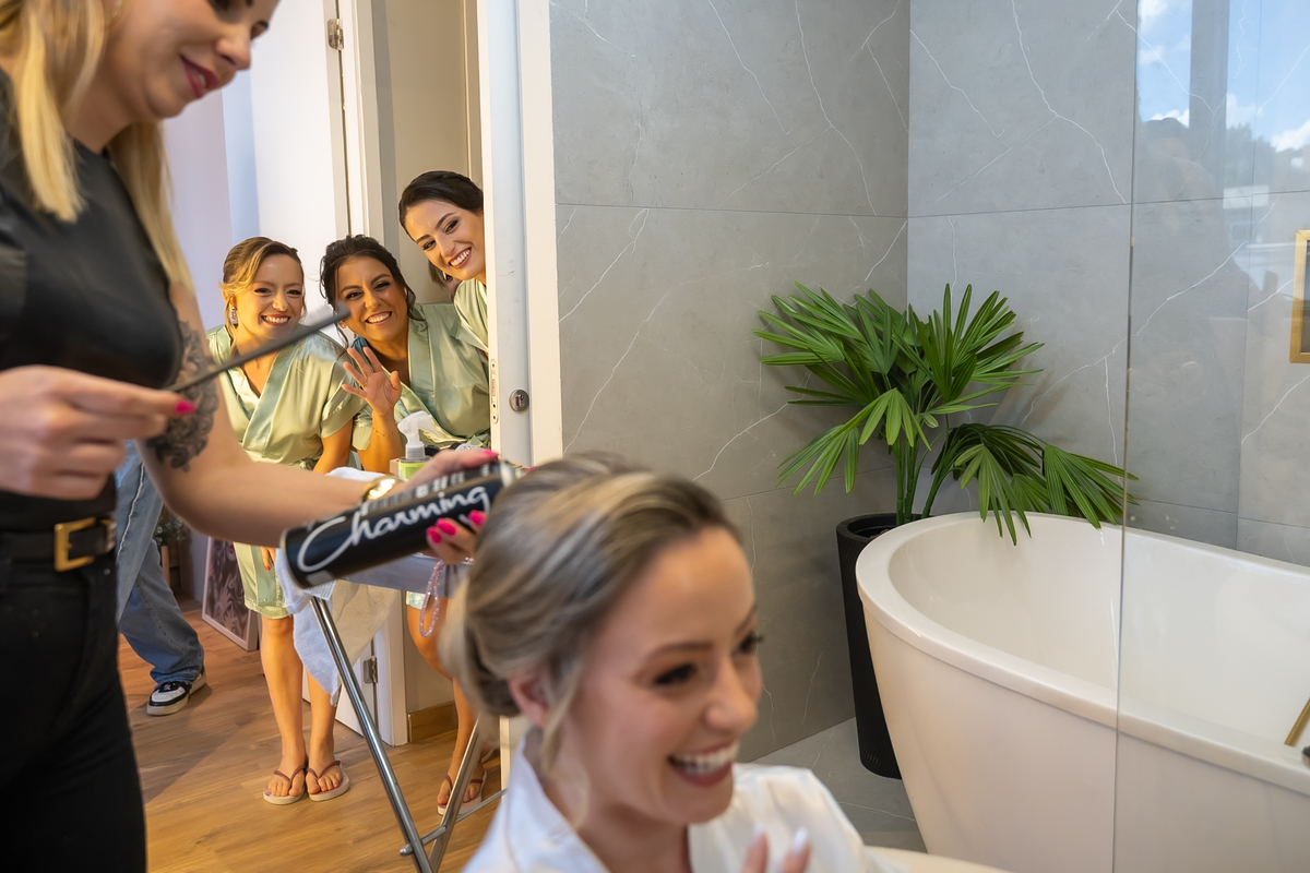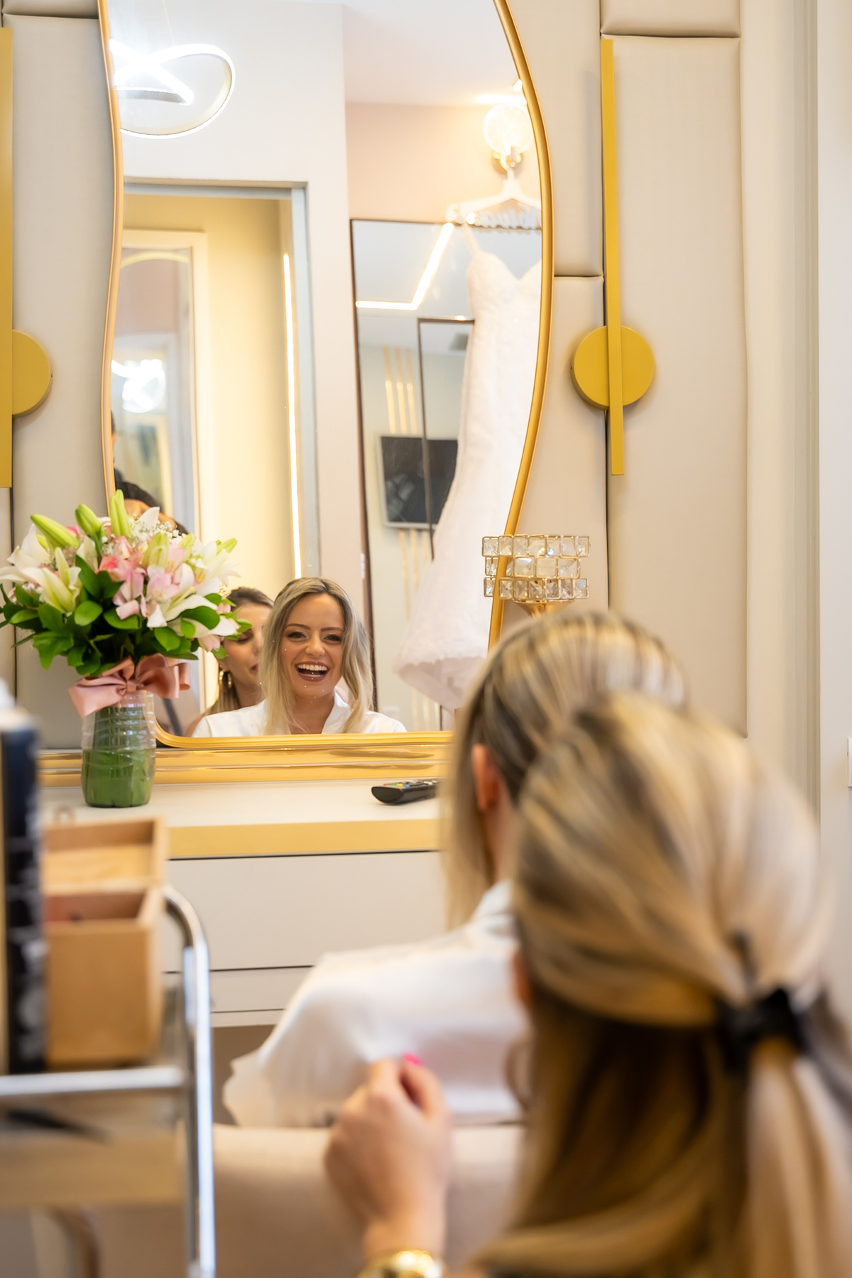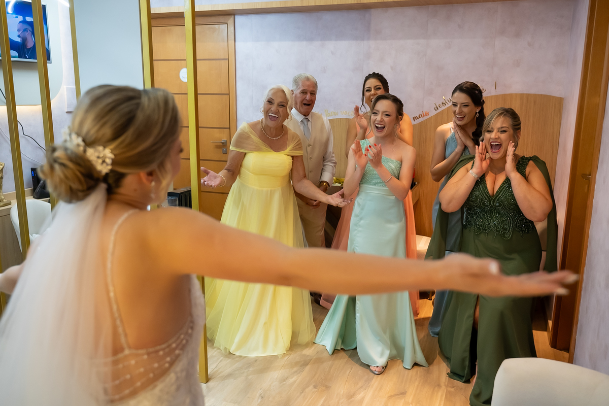 A Monize iniciou esse momento tão especial cercada de amor, se arrumando ao lado da mãe, sogra, irmãs e madrinhas — um making of animado, descontraído e cheio de boas energias.