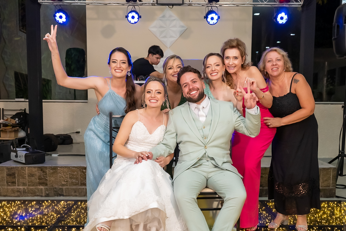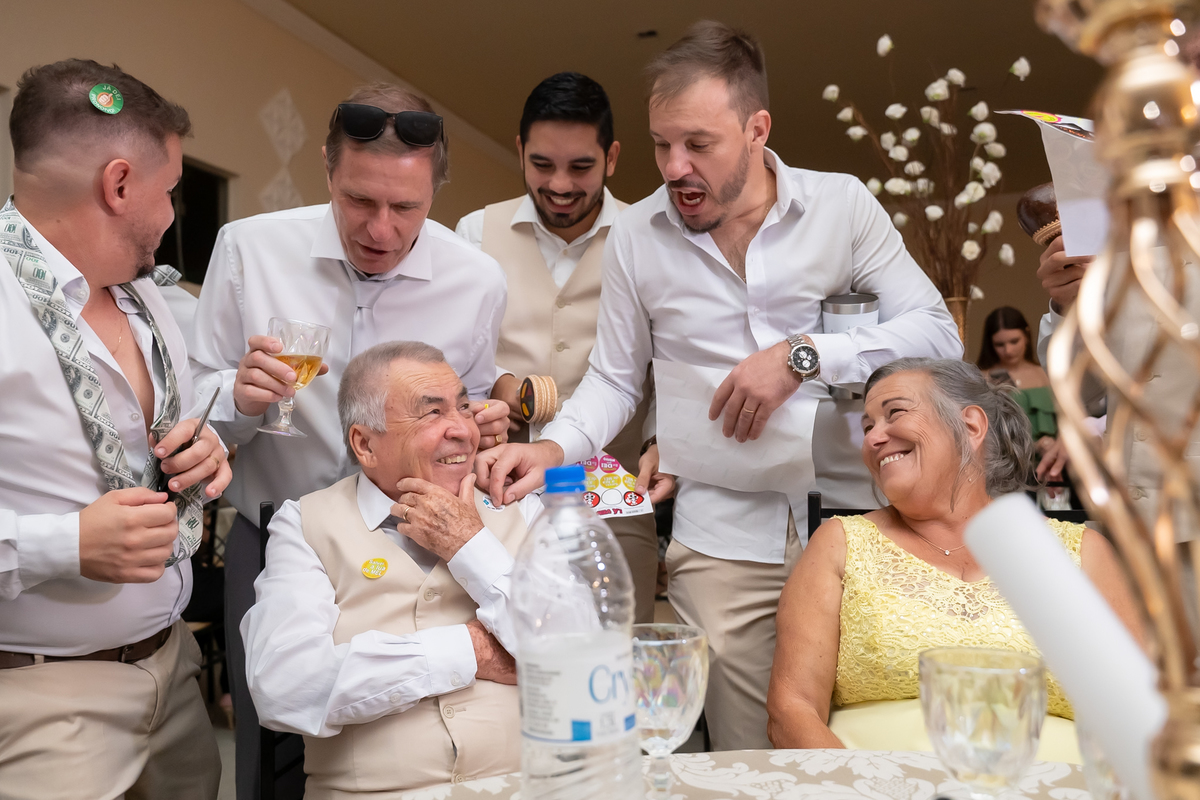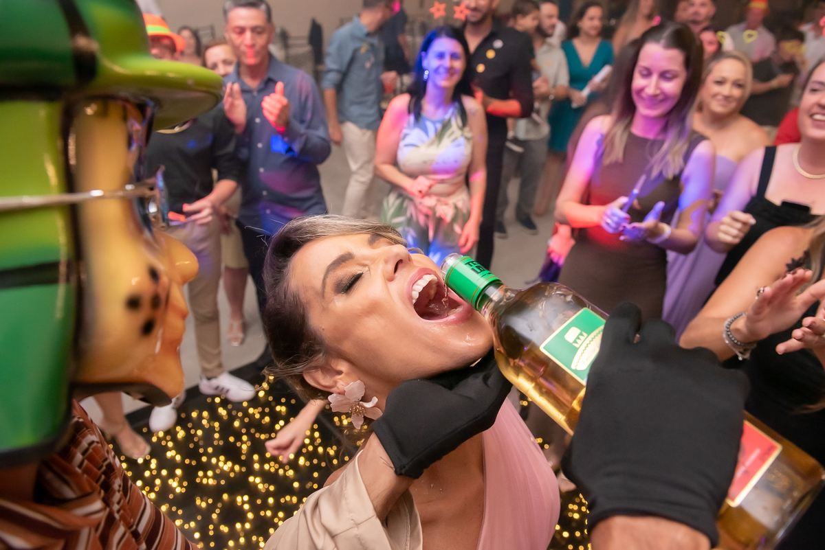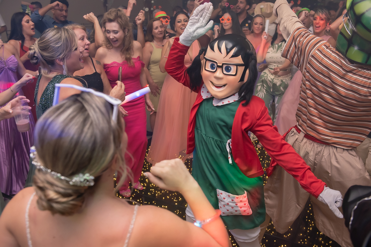 Teve brinde, fotos na mesa do bolo e uma super trend registrando todos os convidados no ritmo de uma música — diversão garantida!