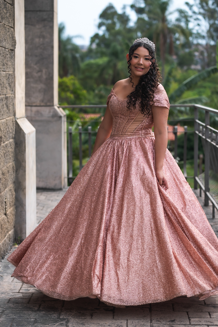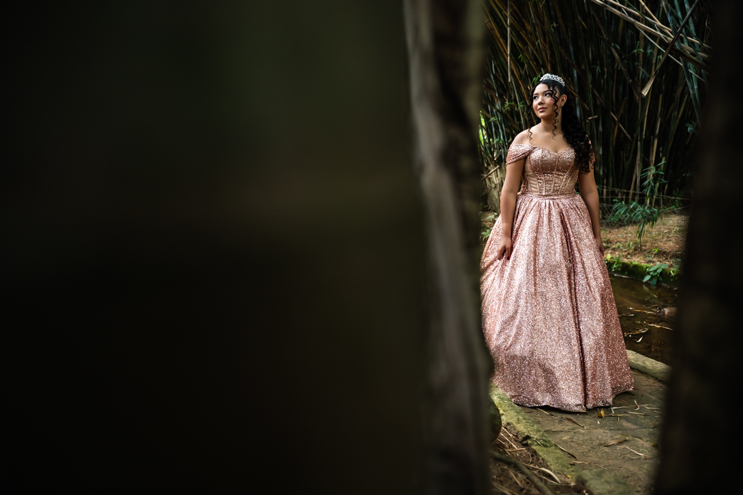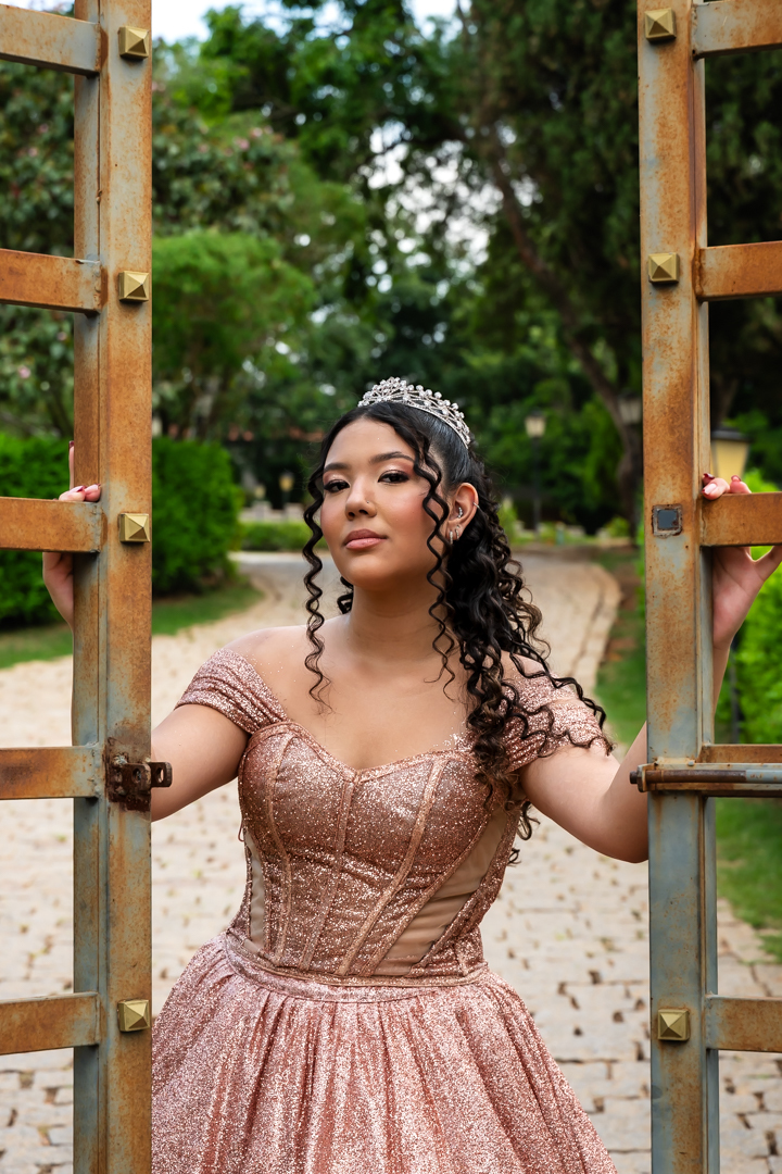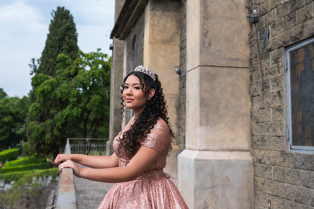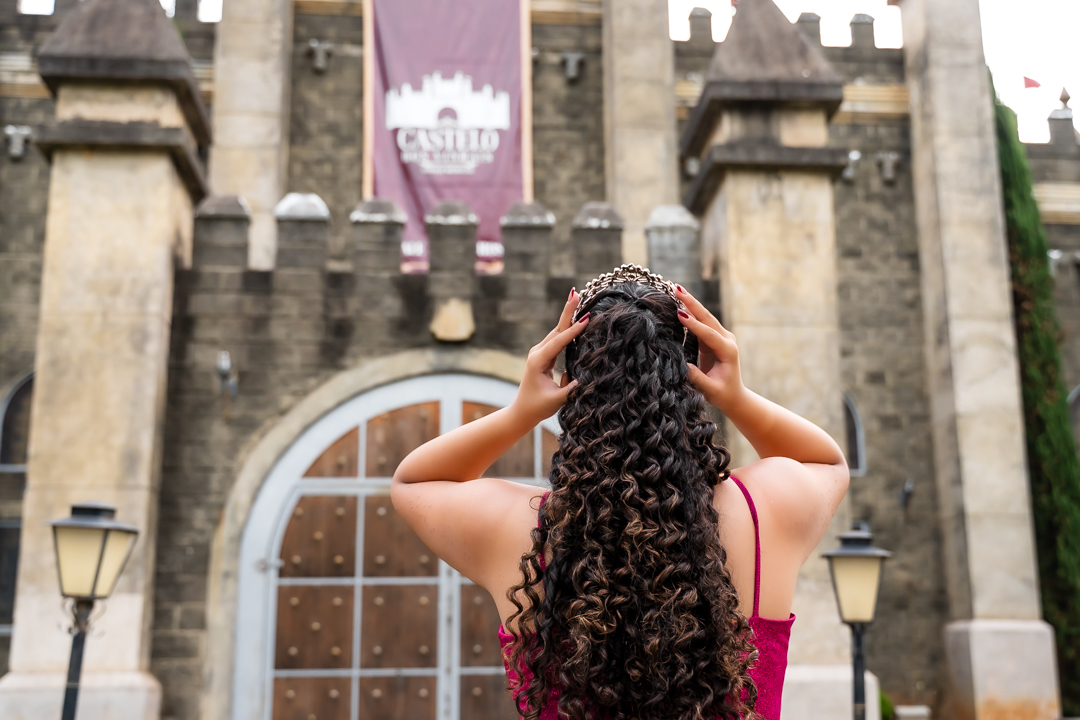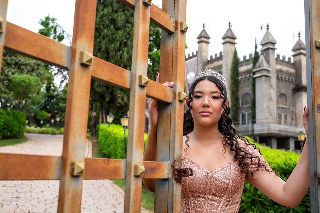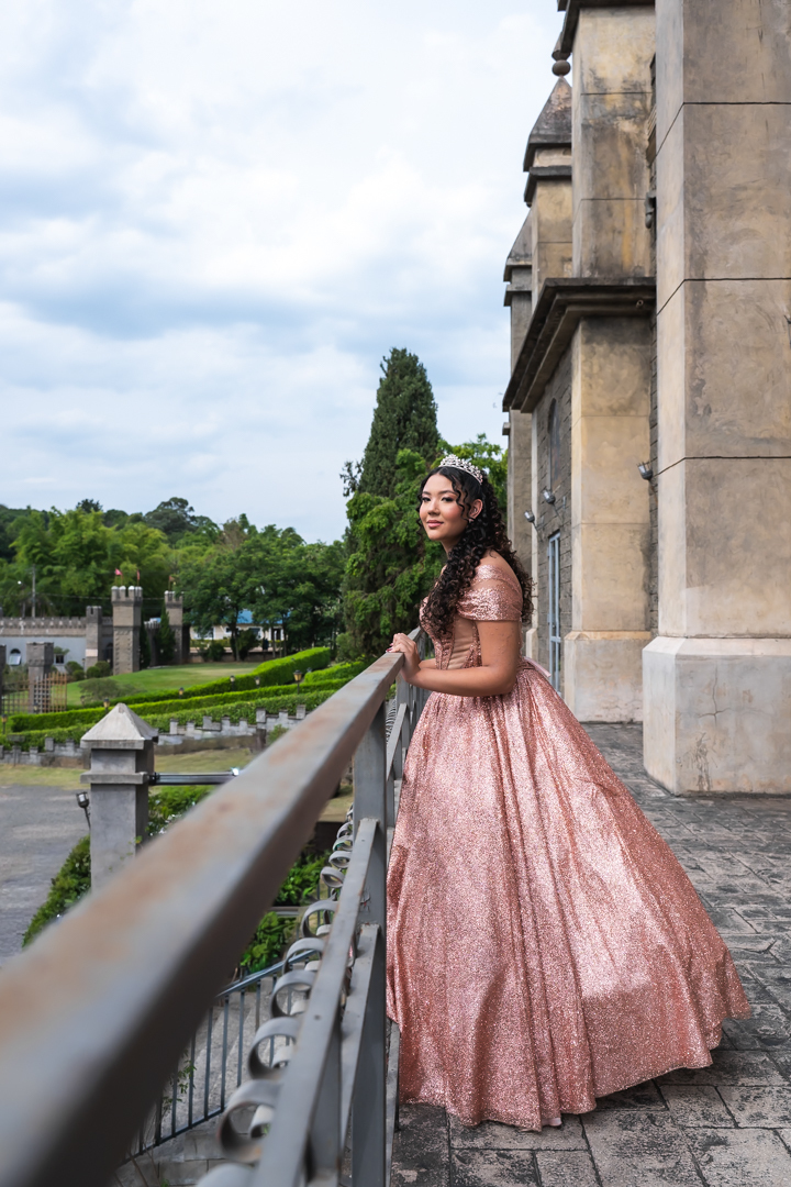 No Castelo dos Vinhais, em Vinhedo, registramos um momento tranquilo, cheio de sutileza. Mesmo tímida e com poucos sorrisos, Raphaela estava linda com seu vestido de festa, vivendo essa fase tão especial do seu jeito — discreto e encantador.