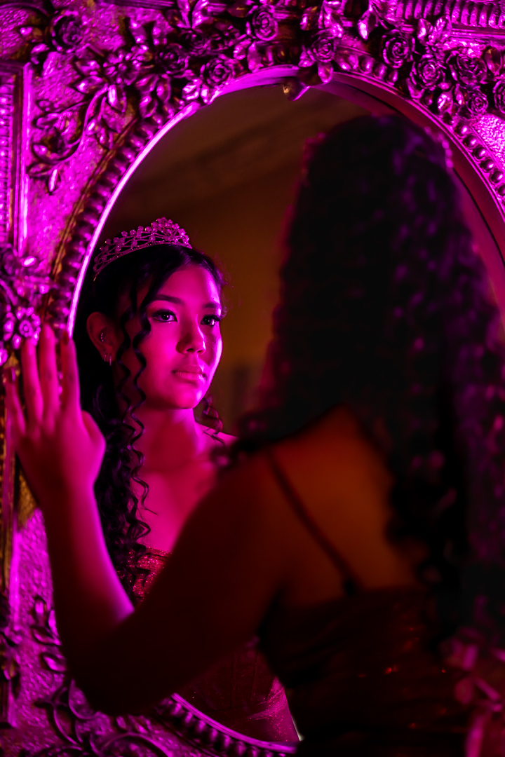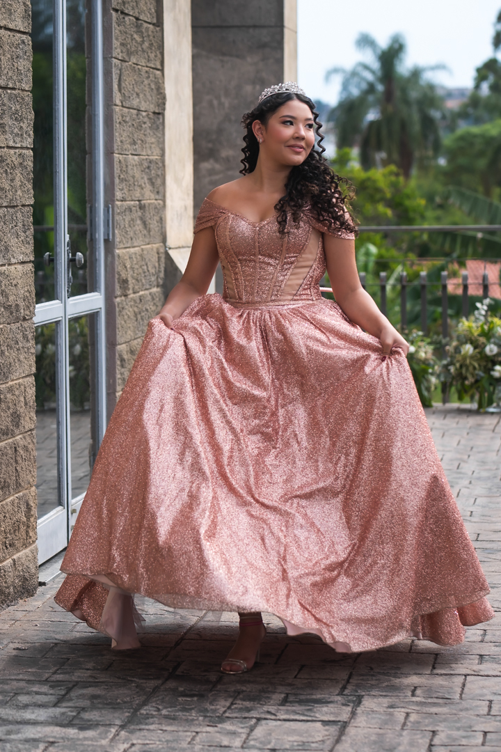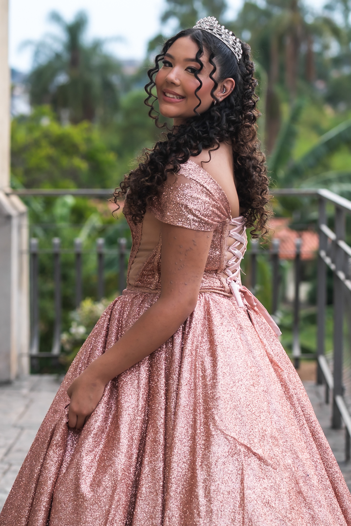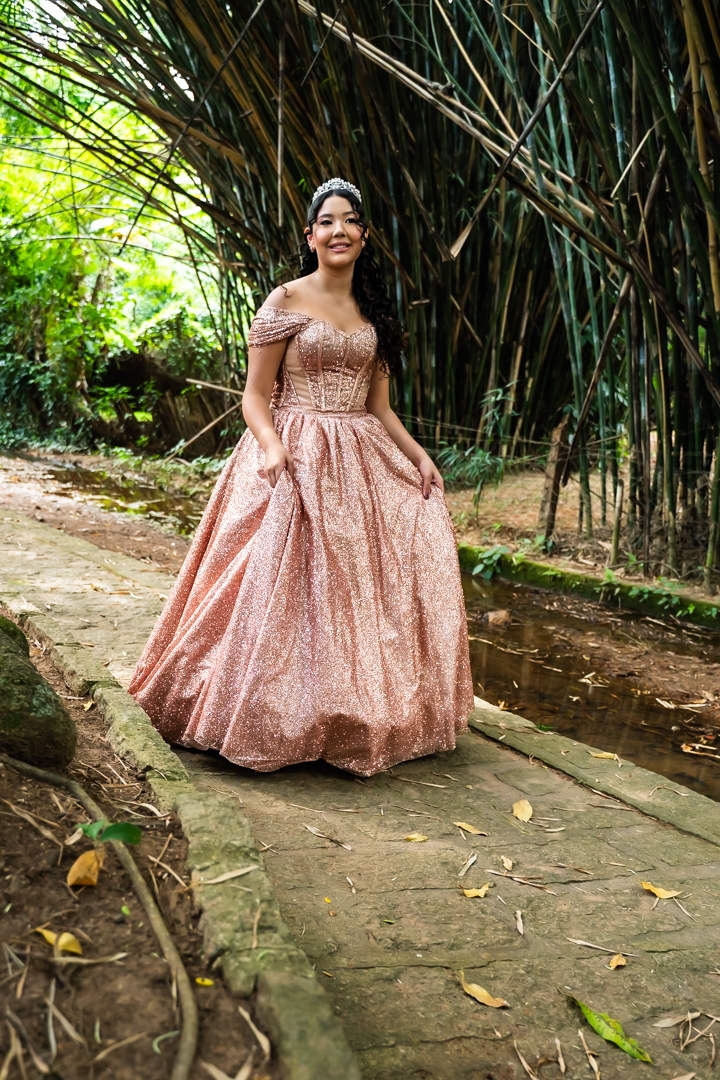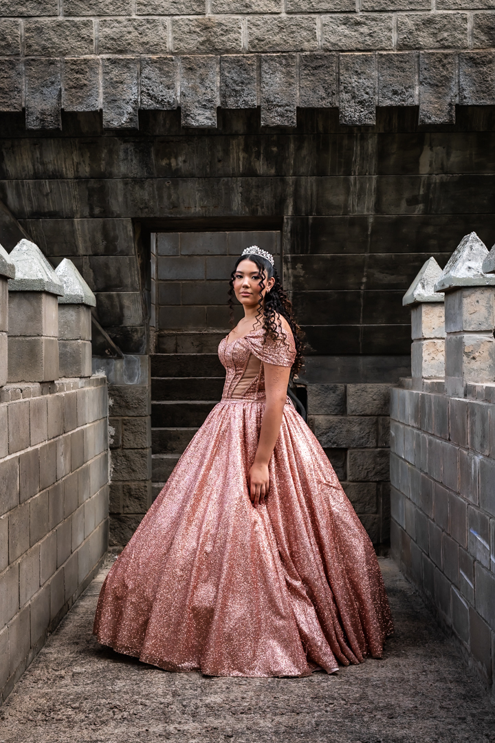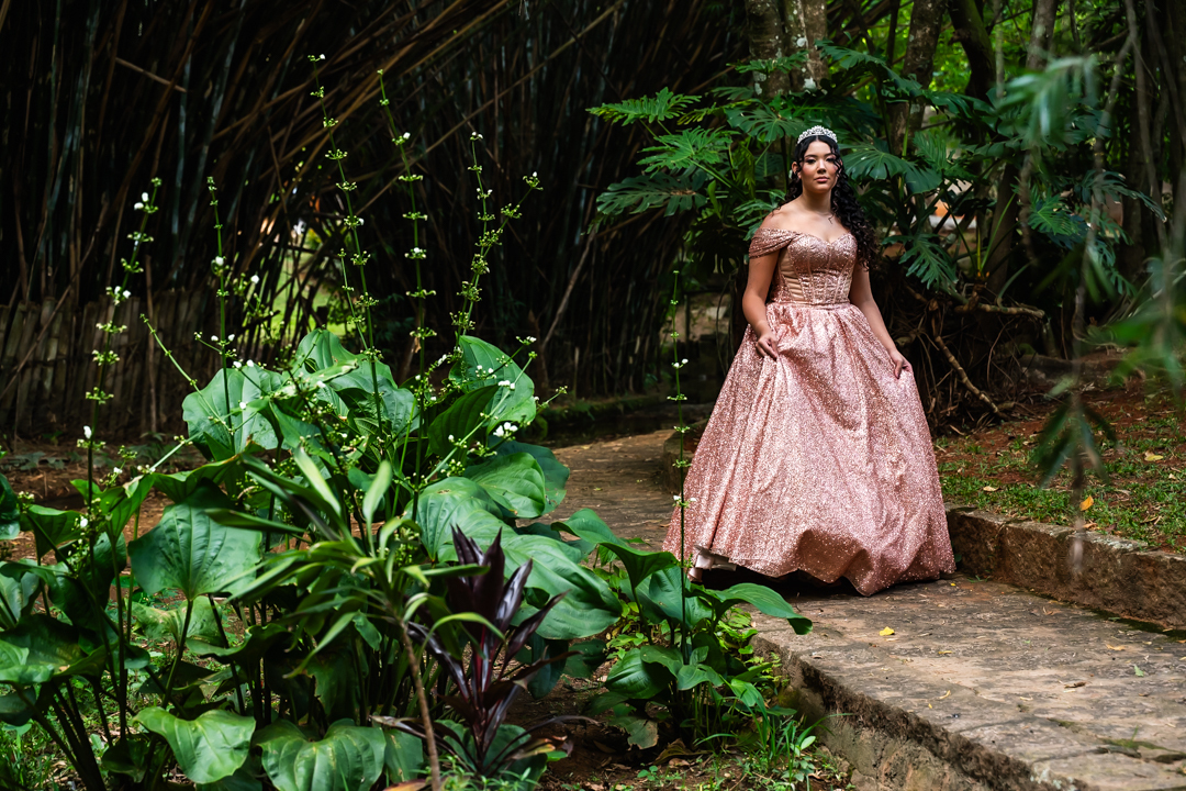 No Castelo dos Vinhais, em Vinhedo, registramos um momento tranquilo, cheio de sutileza. Mesmo tímida e com poucos sorrisos, Raphaela estava linda com seu vestido de festa, vivendo essa fase tão especial do seu jeito — discreto e encantador.